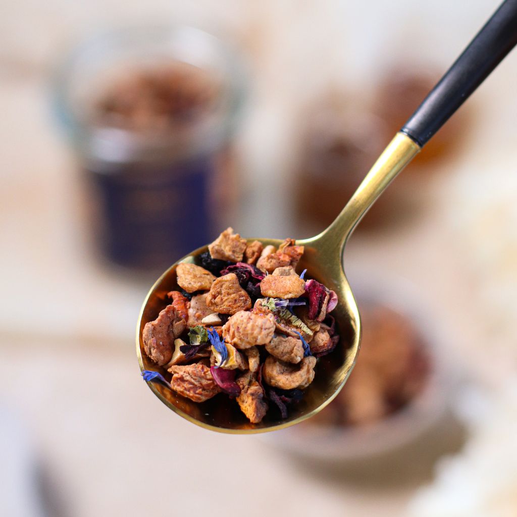 Herbata nie zawiera teiny, dzięki czemu możesz sięgać po nią o każdej porze dnia – także wieczorem. Idealna dla całej rodziny, zarówno jako codzienny napój, jak i efektowna propozycja dla gości.